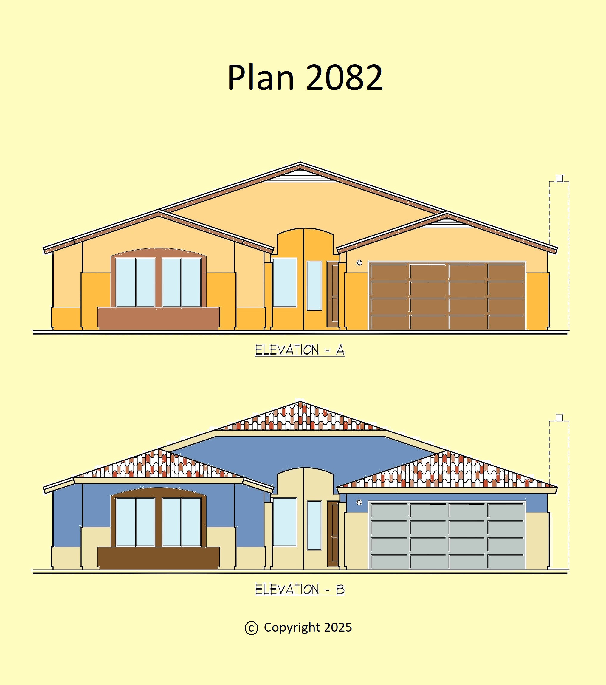 The 2082 Plan features 3 different models, see elevations and floorplan. Incredible space planning…purchase this plan now!