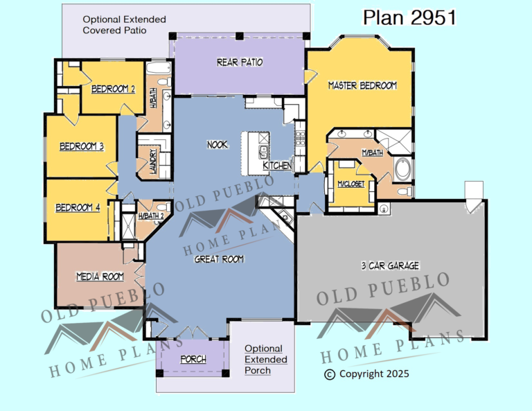 The 2951 Plan features 3 different models, see elevations and floorplan. Incredible space planning…purchase this plan now!